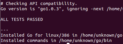 $GOROOT文件夹,真正开始编译安装 Go:cd $HOME/go/src ./all.bash在完成编译之后(通常在 1 分钟以内,如果你在 B 型树莓派上编译,一般需要 1 个小时),你会在终端看到如下信息被打印: