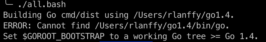 Set $GOROOT_BOOTSTRAP to a working Go tree >= Go 1.4.。设置